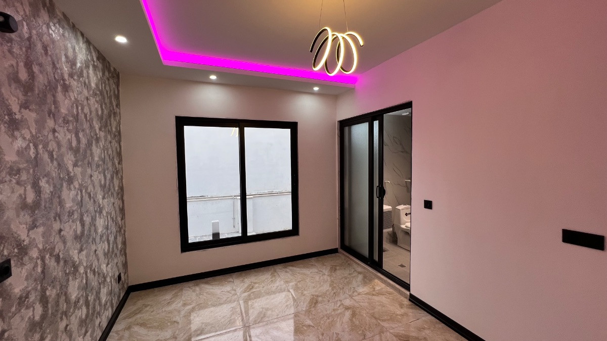 طراحی داخلی این ویلای نوساز با نورپردازی مدرن، سقف کنافکاریشده و کفپوشهای سرامیکی مرغوب، فضایی آرامشبخش و زیبا برای زندگی فراهم آورده است. اتاقهای خواب مستر با پنجرههای بزرگ، نور طبیعی فراوانی را به داخل فضا هدایت میکنند و چشماندازی دلباز از طبیعت اطراف را ارائه میدهند.
