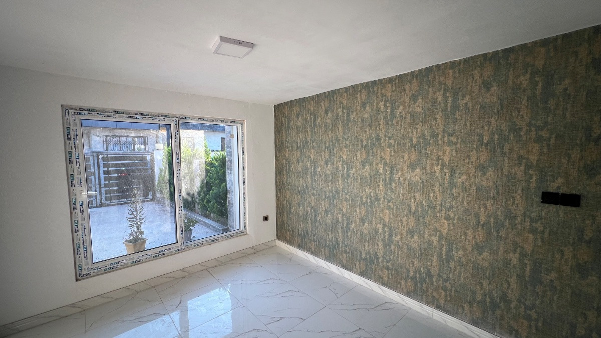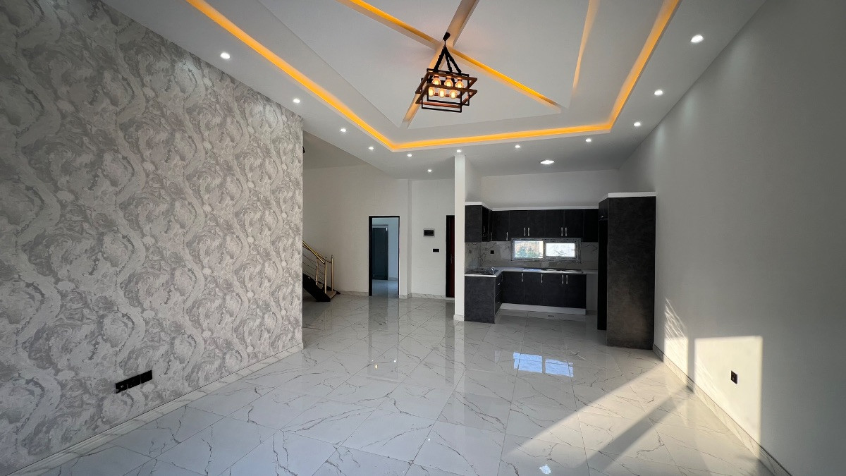 ویلای نیمپیلوت با 3 خواب مستر (یکی از خوابها در طبقه پایین) و 140 متر بنا روی 220 متر زمین ساخته شده؛ سازهای مدرن، شیک و بسیار نورگیر که از لحظه ورود، حس لوکس و دلپذیری منتقل میکند. حیاط بزرگ سنگفرششده فضای شخصی و دنجی برای صبحانههای بیرونی، بازی کودکان یا دورهمیهای دوستانه فراهم کرده است.